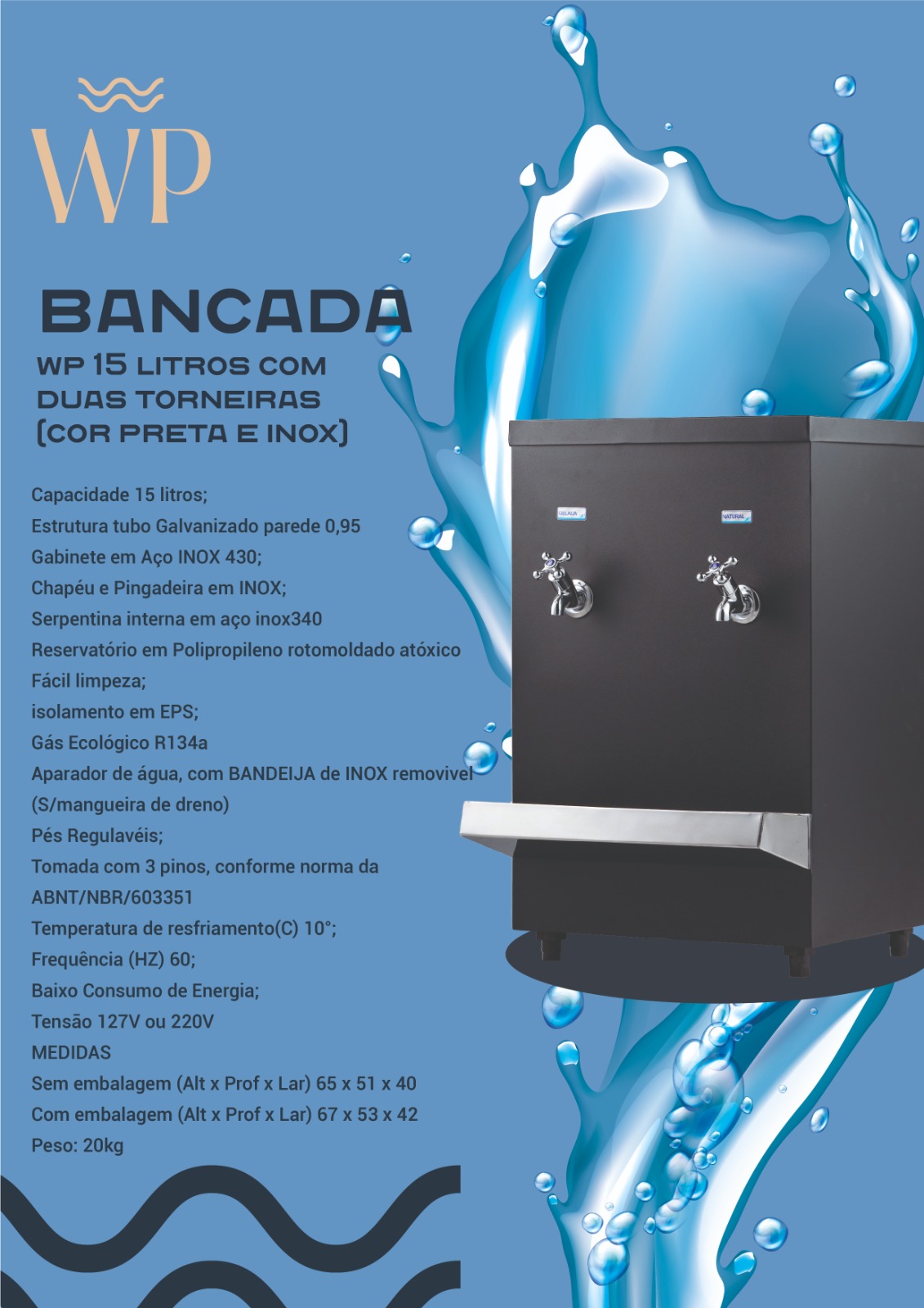 Aparador de água, com BANDEIJA de INOX removível