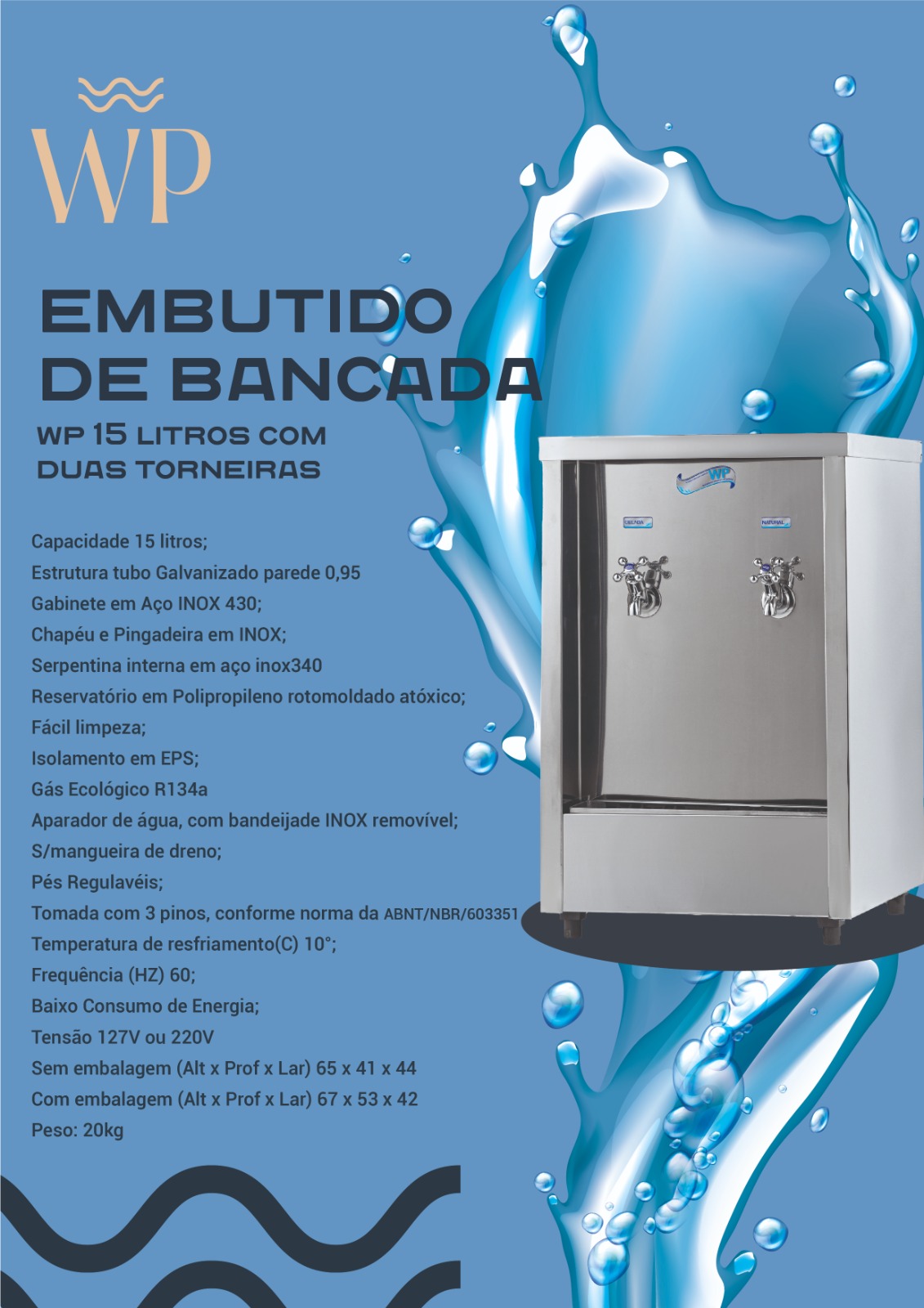 Aparador de água, com bandejade INOX removível;